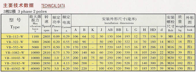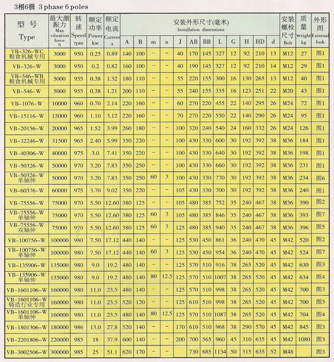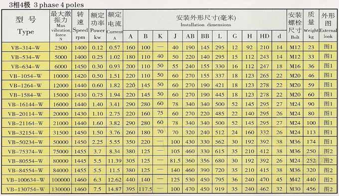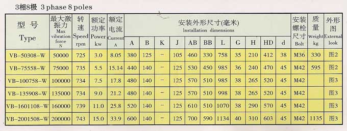 VB系列振動(dòng)電機(jī),功率0.12~25KW,2、4、6、8極,激振力為2.5~300KN,共計(jì)56個(gè)規(guī)格。