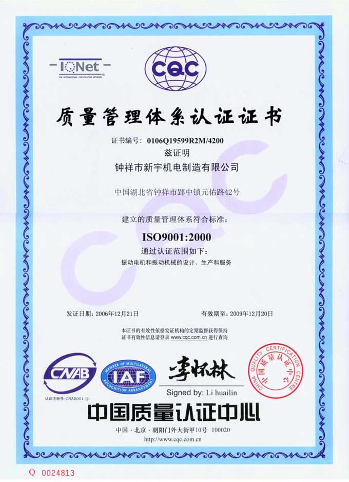 9000質(zhì)量管理體系認(rèn)證證書