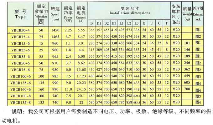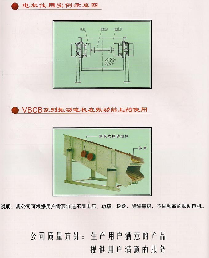 VBCB系列三相異步振動(dòng)電機(jī)是我公司自主開發(fā)的新產(chǎn)品,擁有自主知識(shí)產(chǎn)權(quán),受國(guó)家法律保護(hù)。與普通振動(dòng)電機(jī)相比,它省去了振動(dòng)機(jī)械復(fù)雜的電機(jī)底板結(jié)構(gòu),電機(jī)直接安裝在振動(dòng)機(jī)械的側(cè)板上,可使振動(dòng)機(jī)械實(shí)現(xiàn)圓運(yùn)動(dòng)或直線運(yùn)動(dòng),同時(shí)可使振動(dòng)機(jī)械重量減輕,機(jī)體剛度要求減小,減少振動(dòng)機(jī)械的能耗,安裝維護(hù)方便、單機(jī)激振力大、壽命長(zhǎng)(達(dá)10000小時(shí))。它廣泛運(yùn)用于電力、建材、煤炭、化工、礦山、冶金、輕工、鑄造等行業(yè),主要適用于大型篩分設(shè)備,由于其獨(dú)特的特點(diǎn),可逐步替代軸偏心、塊偏心等其它類型的激振源,同時(shí)為我國(guó)大型振動(dòng)機(jī)械提供了新型、可靠的激振源。