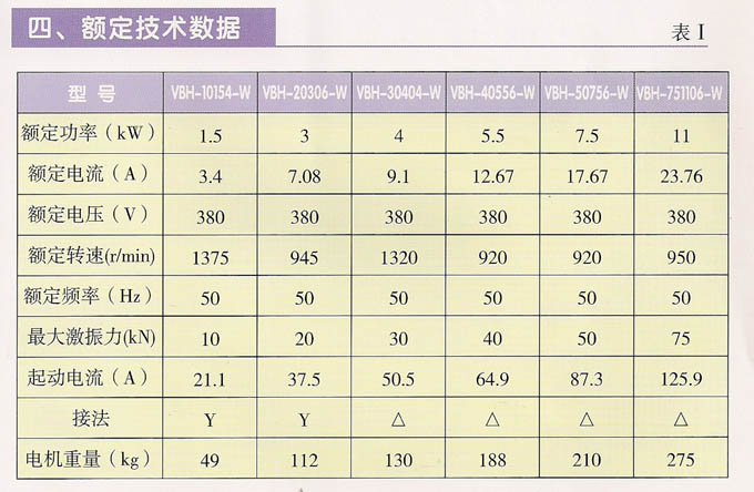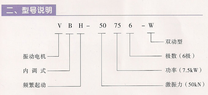 VBH系列頻繁起動振動電機,功率1.5~11KW,4、6極,激振力為10~75KN,共計6個規(guī)格。